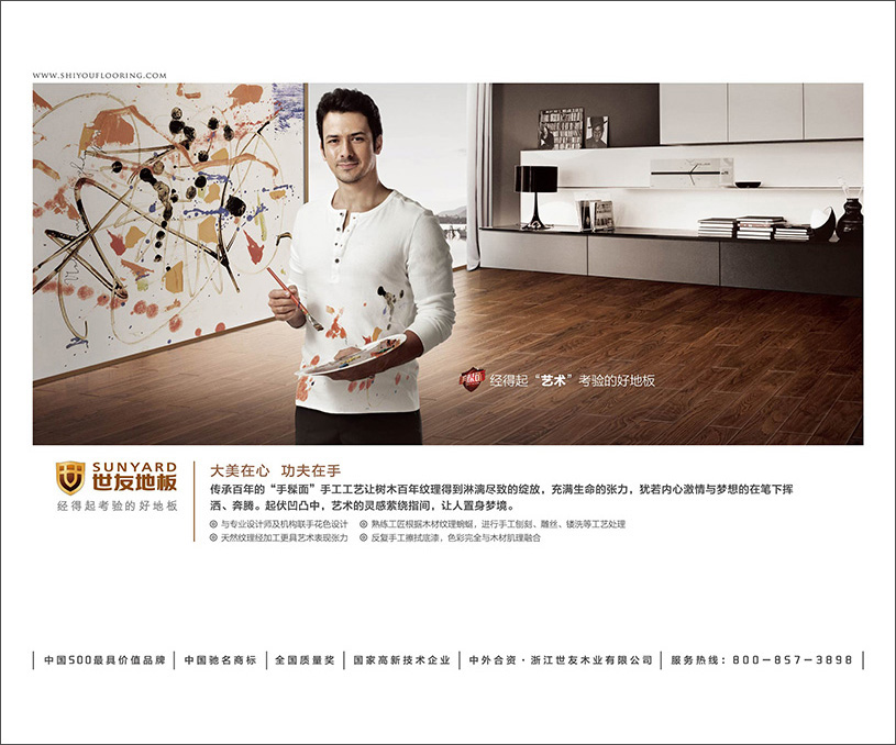 世友地板创立于2001年,是地板行业唯一全国质量奖获得者, 旗下拥有地热王实木地板、钛晶面抗刮痕地板、E0级实木复合地板、速生材压缩地板等产品。